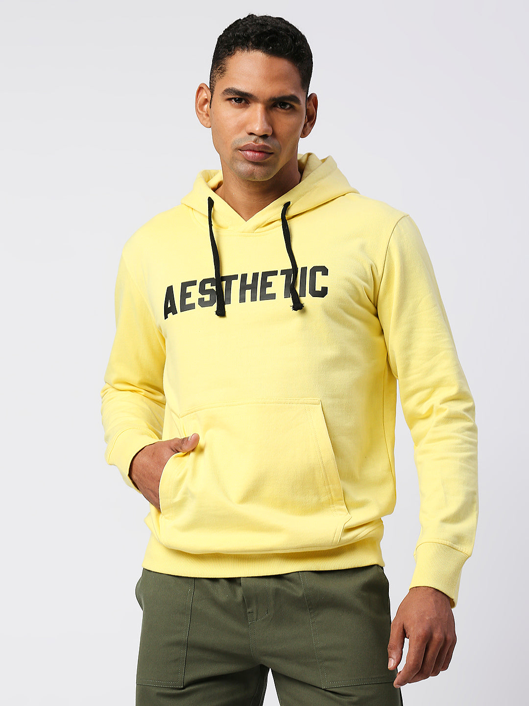 एस्थेटिकनेशन मॉडल की लंबाई 6 फीट, छाती 39 इंच है और वह एम साइज का उत्पाद पहने हुए है।