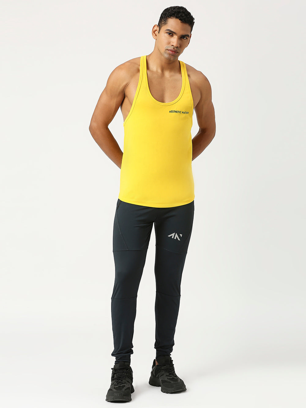 मॉडल विवरण: एस्थेटिक नेशन मॉडल: 6 फीट लंबा, 39.5 इंच छाती, साइज एम पहने हुए।